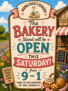 Whether you’re in search of the perfect chocolate chip, a sweet butterscotch , or a tangy lemon to brighten your day, Mama Duck’s Bakery has something for every craving. So come explore our mouthwatering menu, and treat yourself to a taste of heaven baked fresh for you. Welcome to the sweet life!